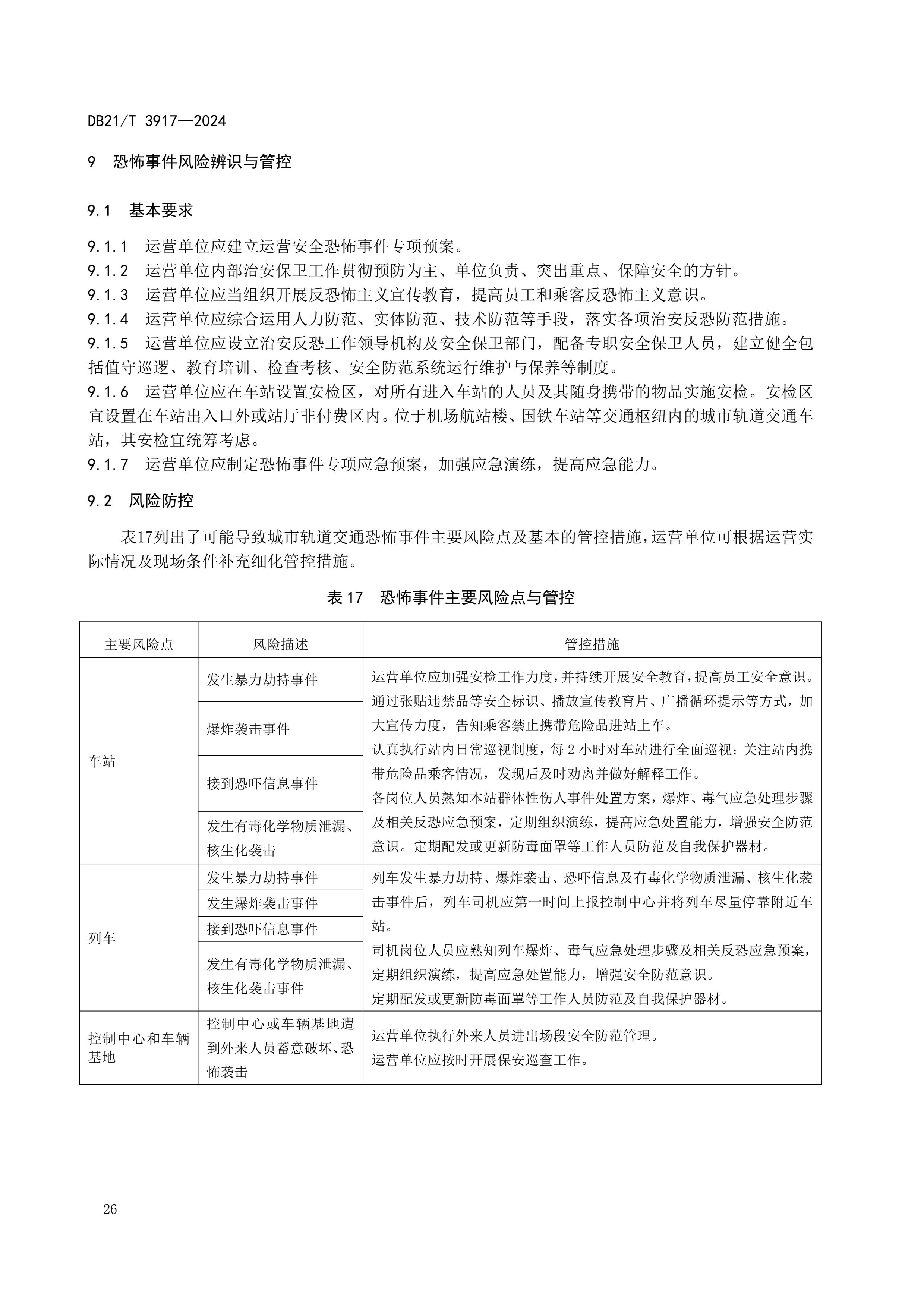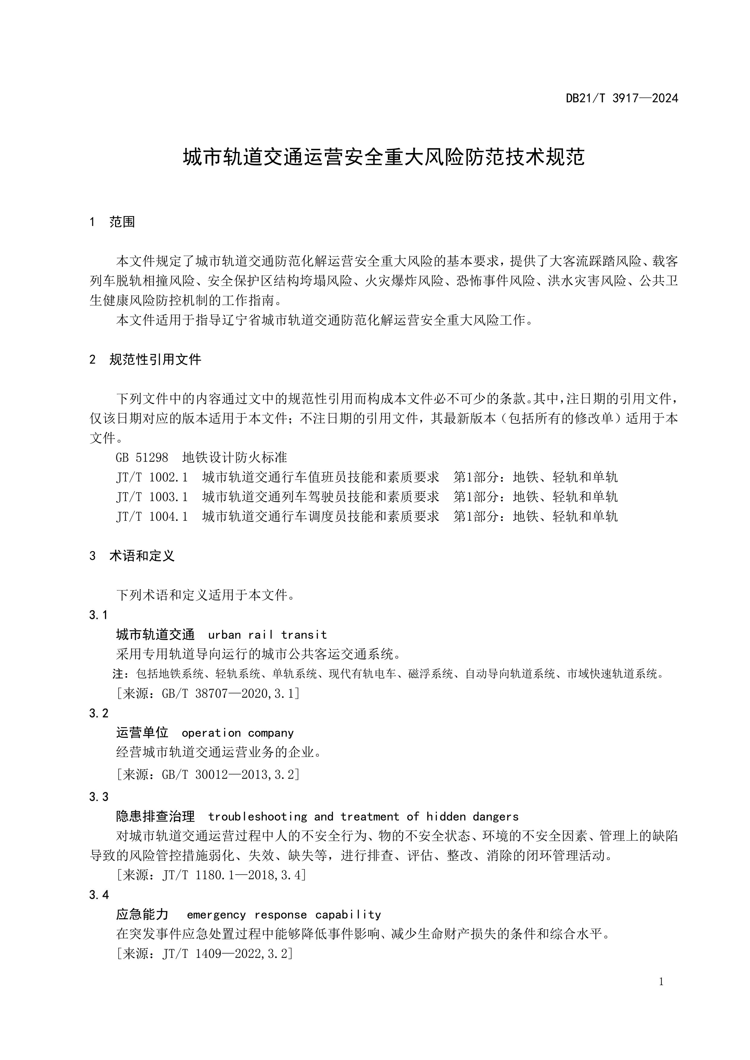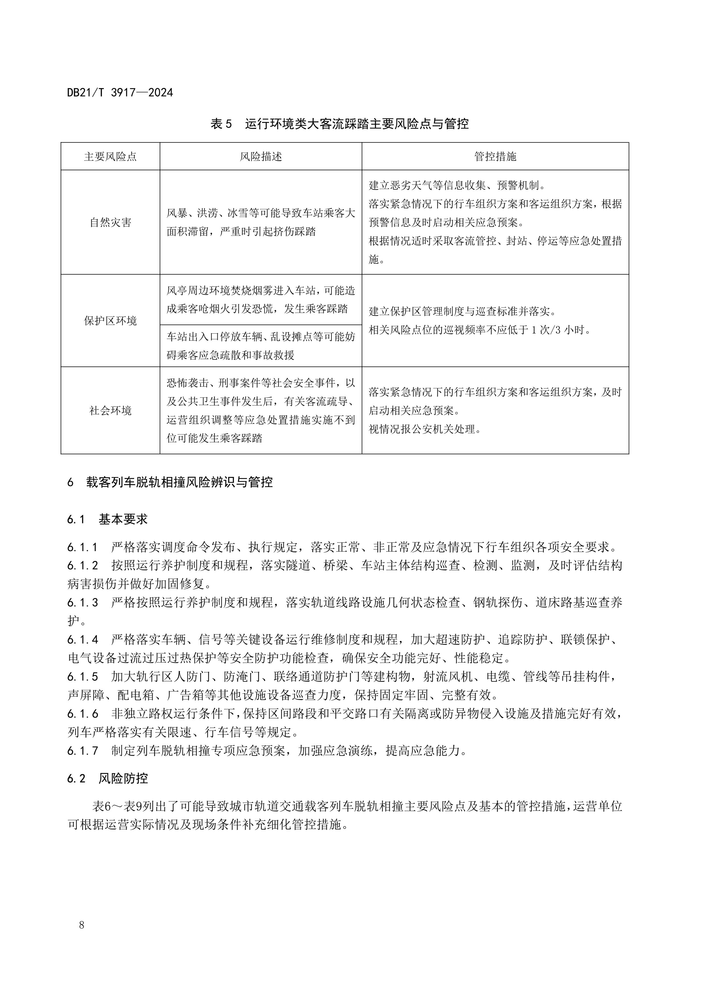 城市轨道交通运营安全重大风险防范技术规范